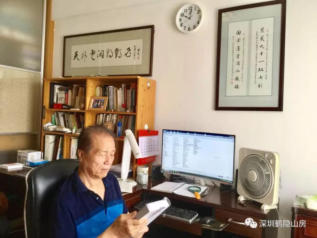 刘荒田先生于家中书房留影
